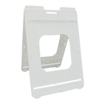 Change signs in seconds with a patented Quick-change feature, signs easily slide in and out. No tape, hook and loop, or screws needed. Molded plastic can be used indoors or out, no rust, discoloring, splinters or maintenance.Holds rigid sign material up to 3/16" thick. Features molded in handle and textured feet that help keep the sign secure on the ground. Up to 6 lbs. of dry sand for ballast recommended. Grabber hinges hold a rider sign and prevent the frame from opening too far.